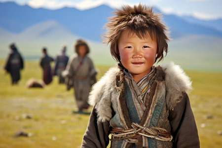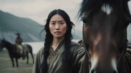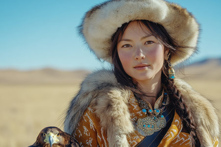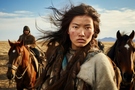 Mongolian girl is very serious-looking, the daughter of a nomad