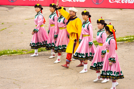ULAN-UDE, RUSSIA - JULY 17: The 4th General Session of the World Mongolians Convention. Girls dancers are going to perform, July 17, 2010 in Ulan-Ude, Buryatia, Russia.