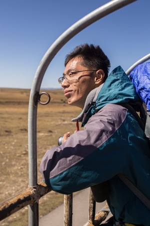 man European tourists in the mountainuos Tibet