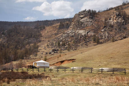 Traditional Mongolian Yurta in Olkhon region mountains landscape