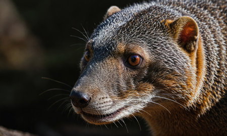 Close up of a banded mongoose