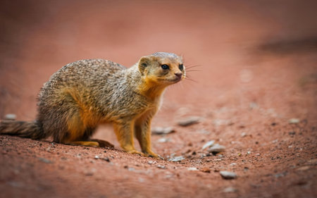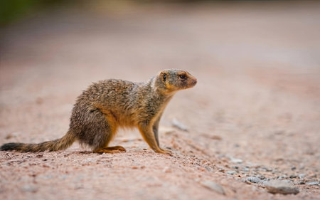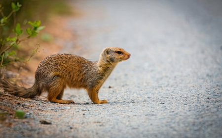 Yellow Mongoose (Mongolophus giganteus) standing on the road