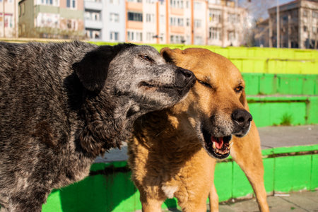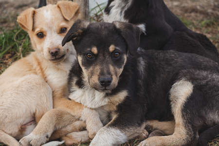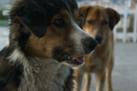 Happy dog twins. Homeless dogs. Happy homeless dogs
