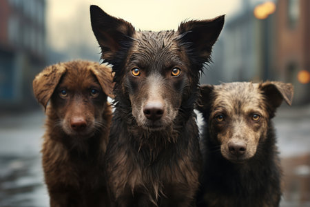 Attention-grabbing Banner with three hungry dogs. Animal pet food. Generate Ai