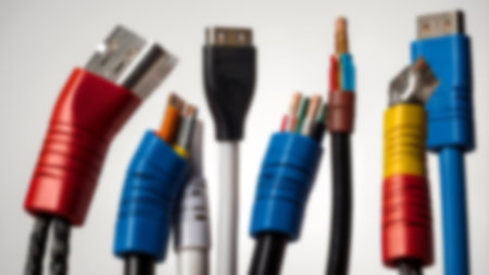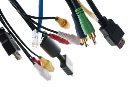 Electronic components, audio-video cables, RCA plugs and USB connectors.