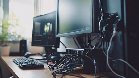 close-up of sensors, with wires and cables visible, created with generative ai