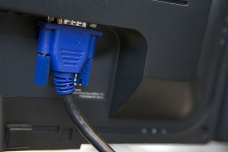 Shot of a cable plugged into a computer monitor