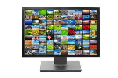 Computer monitor with colorful abstract pattern on a white background. 3d illustration