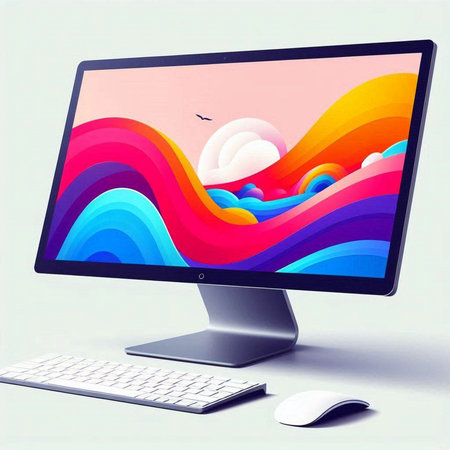 Modern computer monitor with colorful abstract background. Eps 10 vector file.