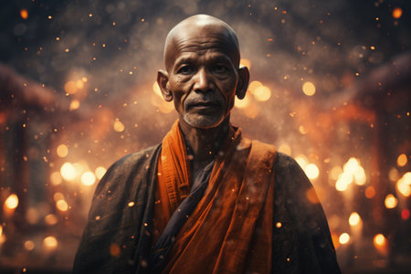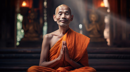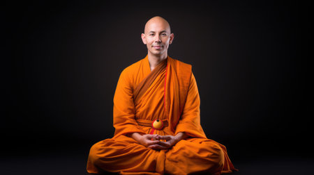 Serene monk meditating, looking at camera, low key generated by artificial intelligence