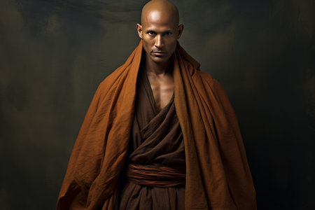Traditional asian monk robe. Ethnic portrait. Generate Ai
