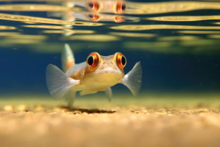 mudskipper in shallow water with reflection on surface, created with generative ai