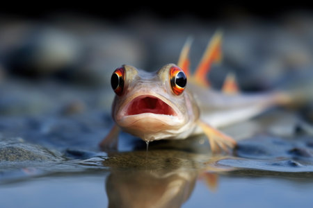 mudskipper with mouth open, displaying gill movement, created with generative ai