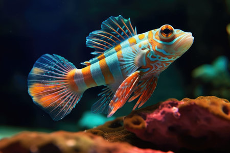 The Mandarin fish, one of the most colorful saltwater fish, AI generative
