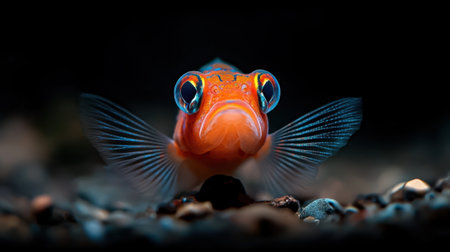 Stunning Close-Up of a Vibrant Black and Orange Fish with Expressive Eyes in a Studio Setting