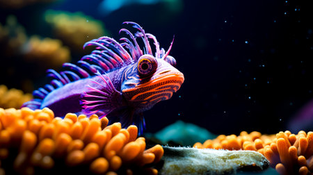 A vibrant fish with unique features gracefully navigates through a coral reef ecosystem showcasing its beauty and habitat.