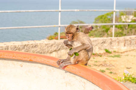 Monkey. Crab-eating macaque. Asia Thailand seats on the shore of the monkey island