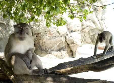 small monkeys relax on tropical beach
