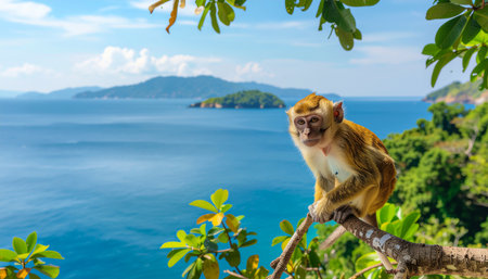 Monkey on a Branch with a Stunning Tropical Seascape