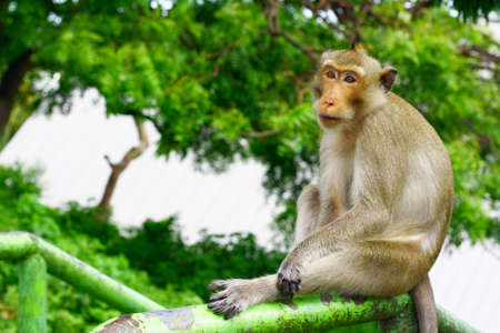 wildlife of Thai Monkey in alone emotion