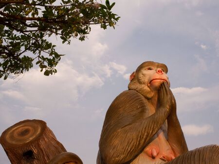 A beautiful shot of a monkey statue in loro park zoo in spain