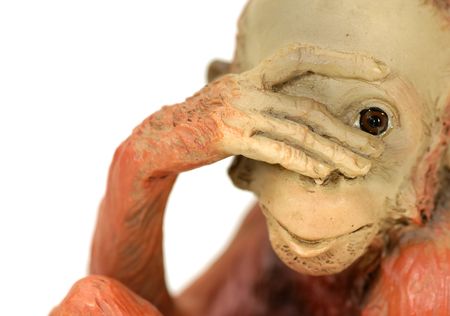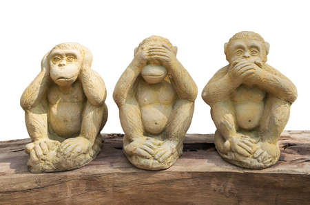 icon monkey statue covers her ears, mouth and eyes with hands. Rumors, I don't see, I don't hear, I don't say anything or stone three wise monkeys isolated on white background with clipping path include for design usage purpose.