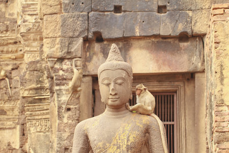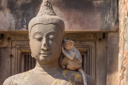 Statue of Buddha at Pra Prang Sam Yot in Lopburi Thailand.