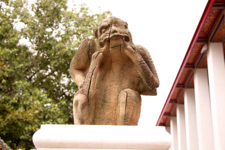 Statue of little, thinking demon in front of temple in Chiang Mai, Thailand