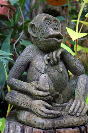 marble animal statue of a orangutan, Big ape sculpture, tropical garden decoration