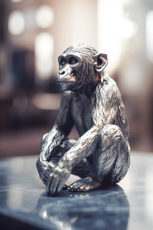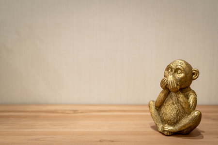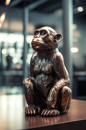 Abstract bronze Sculpture with Artistic Design and Empty Space for Decoration of monkey covering his mouth