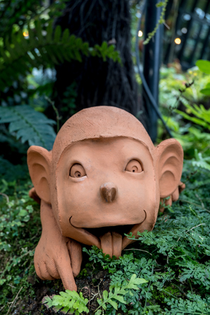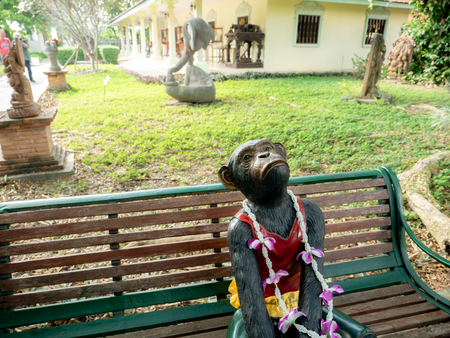 Monkey Statue Sitting Lonely on The Long Chair in The Garden