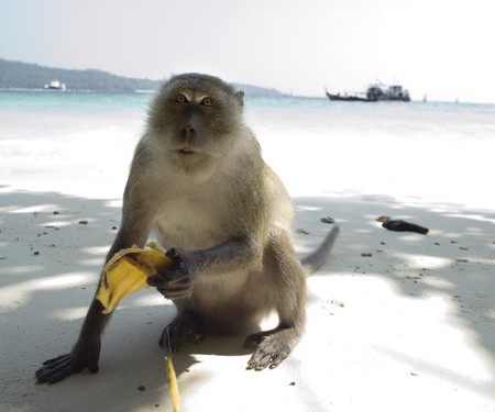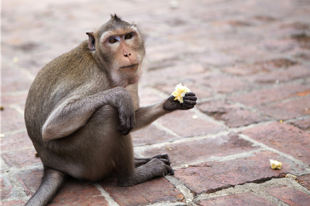 Monkey eating food in Thailand.