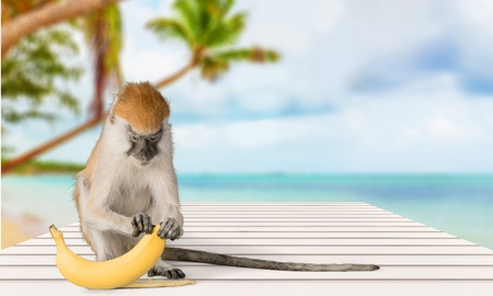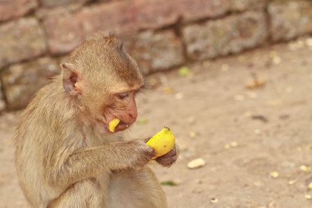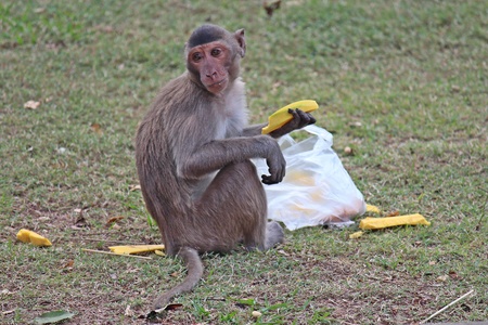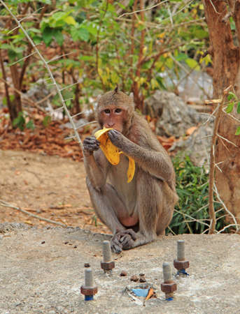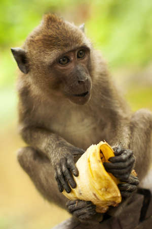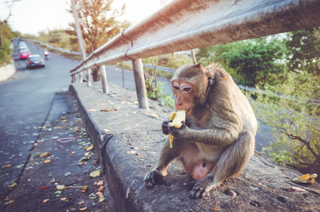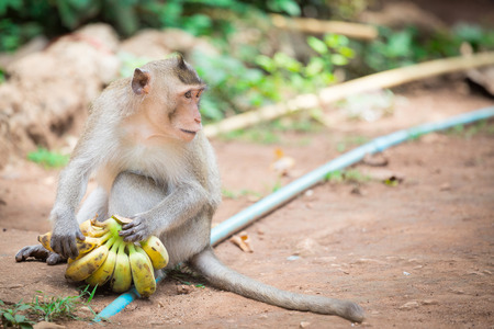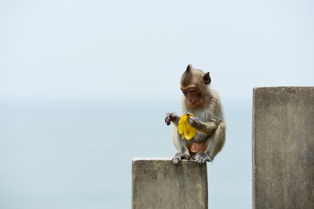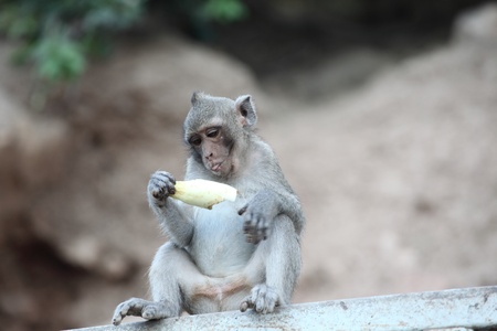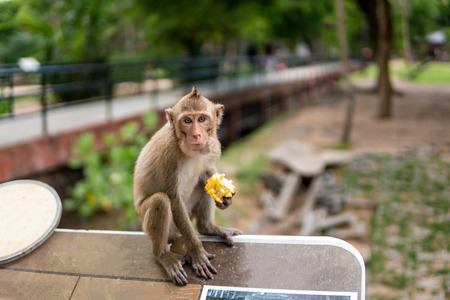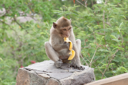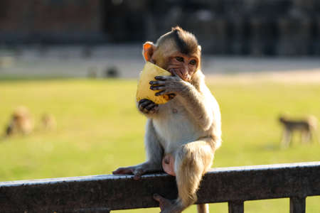 Landscapes of a monkey eating banana in safari park