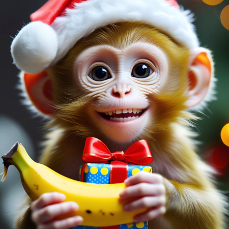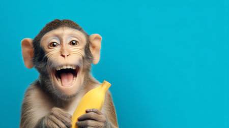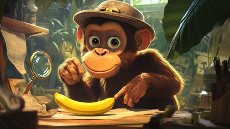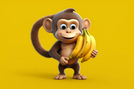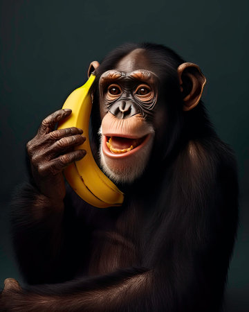 happy monkey holding banana, AI generated image