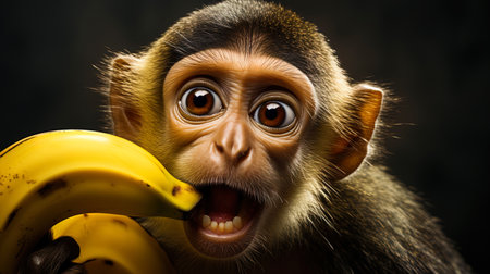 Portrait of a monkey hold a banana , Generate Ai.