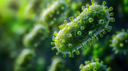 Virus cells and bacteria, microscopic closeup of bacteria and microbes, by ai generative