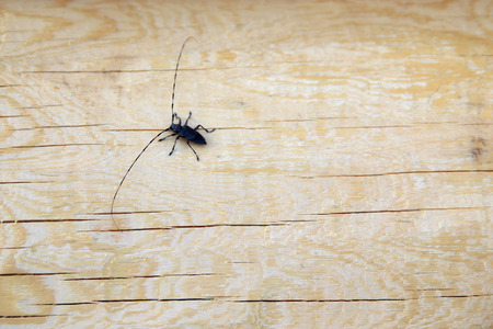 barbel beetle is a tree-eater. Black spruce mustache. Wood processing for protection from insect pests. Copy space