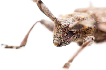 Close up of a Longhorn beetle ( Coleoptera-Cerambycidae ) on white background