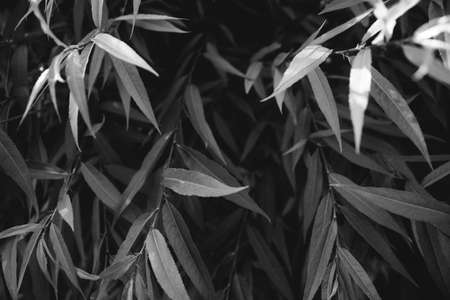 abstract plant background, silhouettes and shadows of leaves in the sun, black and white frame of plants