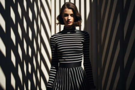 Paris, France - March 5, 2019: Street style - Woman wearing black white striped jumper, plaid pants and Chanel bag, before a fashion show during Paris Fashion Week - PFWFW19