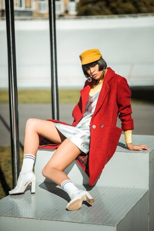 fashionable appealing african american woman in chic attire looking away, fashion concept, banner