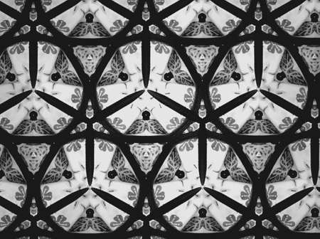 abstract concrete structure with lanterns black and white geometric background