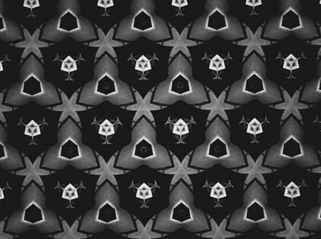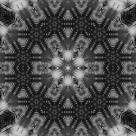 Abstract seamless pattern. Black and White background. Kaleidoscope from flowers. Hydraulic tile design.