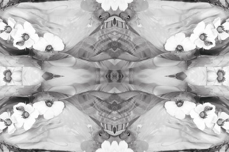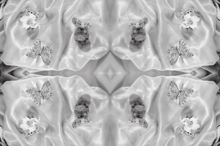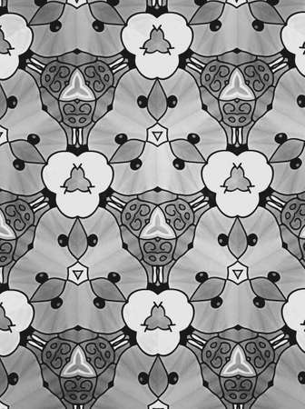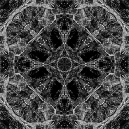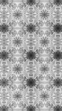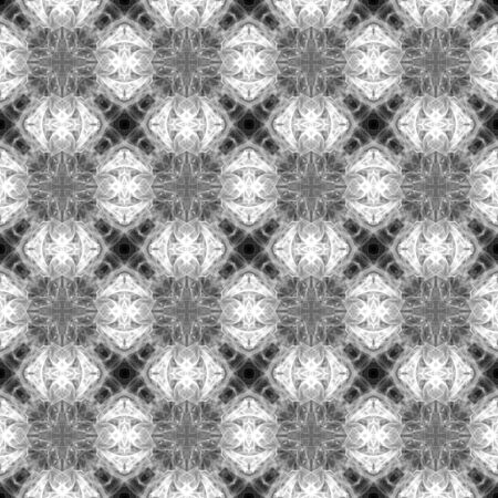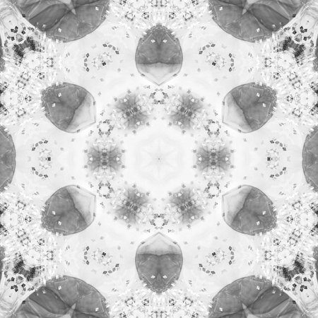 Computer graphics, pattern - kaleidoscope, seamless surreal magic texture in shades of gray. The tile is square. Background for a site or blog, drawing for textiles, wallpaper, packaging.