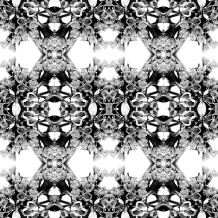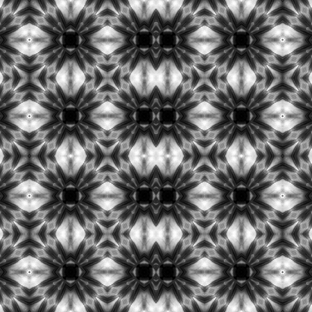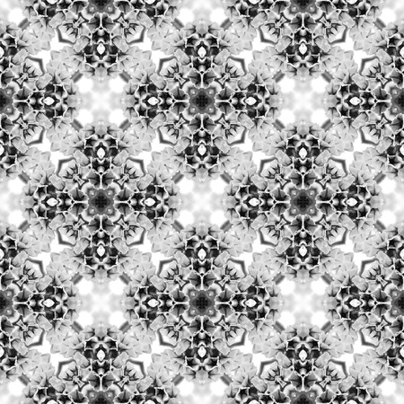 Abstract seamless pattern. Black and White background. Kaleidoscope from flowers. Hydraulic tile design.