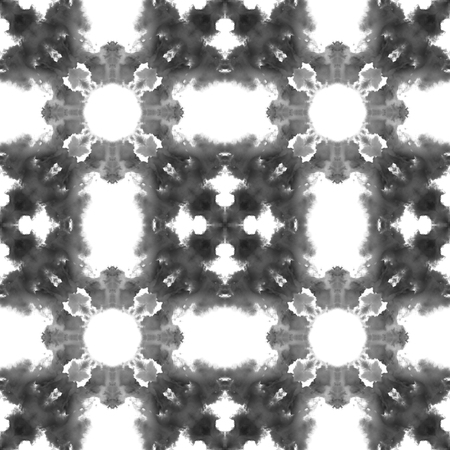 Tiled watercolor background. Black and white lovely boho chic summer design. Hand painted tiled watercolor border. Textile ready delightful print, swimwear fabric, wallpaper, wrapping.
