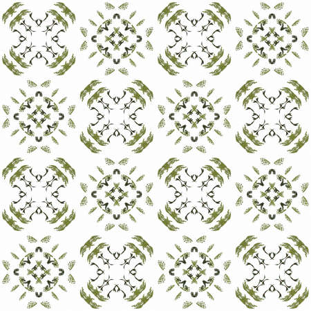 Seamless texture with 3D rendering abstract fractal green pattern on a white background for fabric swatch