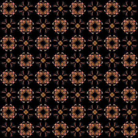 Seamless texture with 3D rendering abstract fractal orange pattern on a black background for fabric design