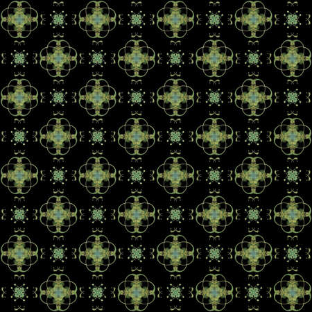 Seamless texture with 3D rendering abstract fractal green pattern on a black background for fabric design