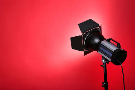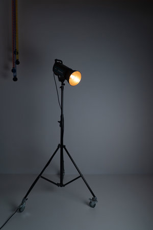 Studio lamp. Lighting equipment for photo and video shooting. Spotlight on a tripod